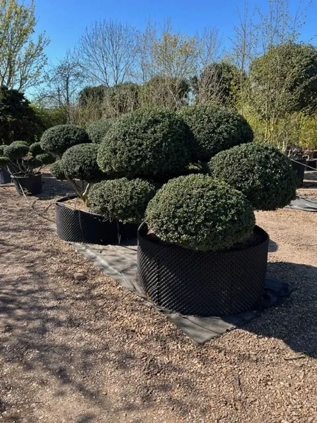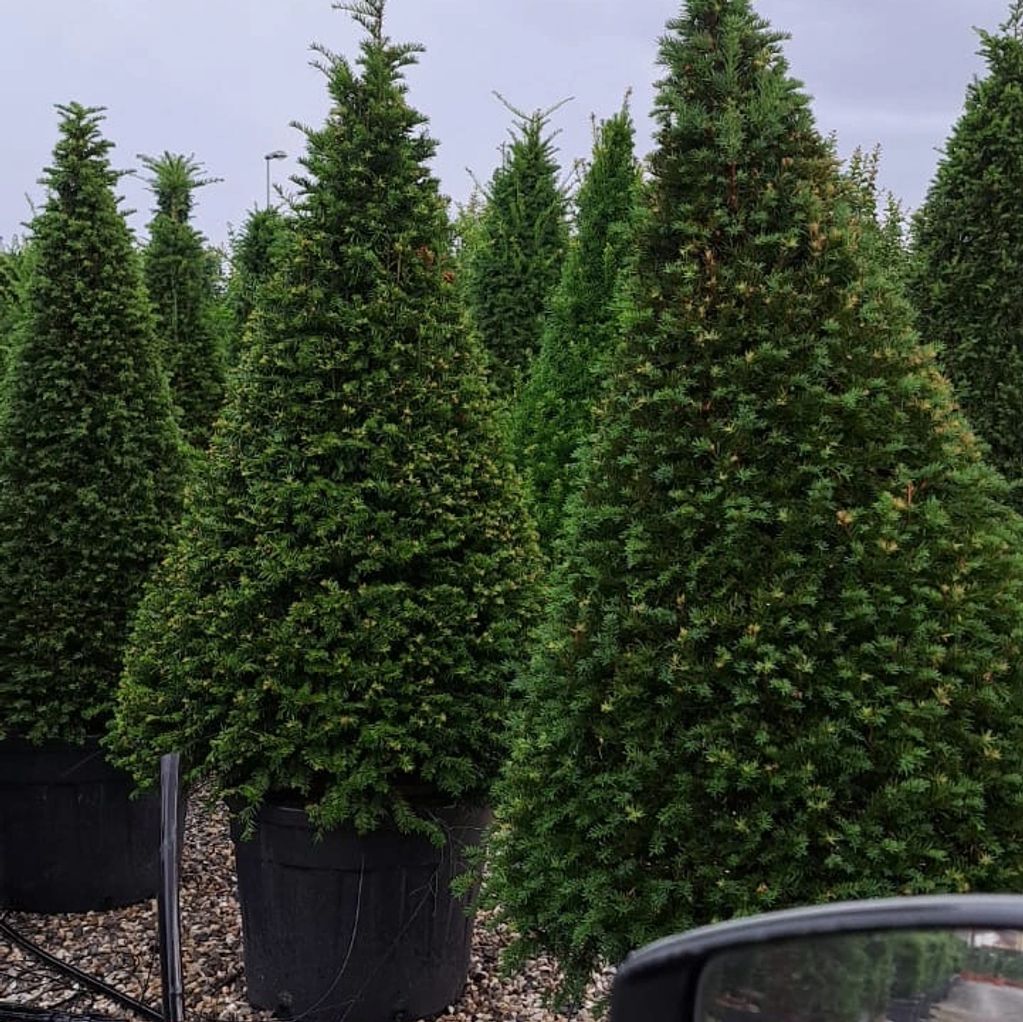 Taxus baccata (English Yew) cones make superb topiary plants. Grown in containers or in the ground as specimens. Various sizes available.